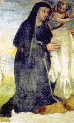 Francis advised her not to abandon her family, so she did not join the Franciscan convent. Instead, she turned the administration of her affairs over to her two sons and spent the rest of her life in the practice of good works.[2] Though some scholars suggest that Jacopa joined the Third Order of Saint Francis, this is an anachronism. She may have led a similar life to that prescribed in the Rule for Franciscan Tertiaries, but the formal foundation of a third order was inaccurately attributed to St. Francis after his death by Pope Nicholas IV, and did not really occur until 1289.[3]