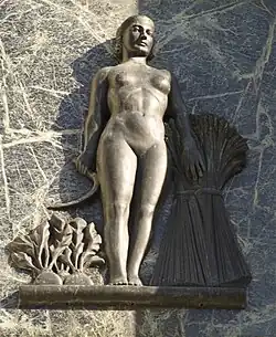 - on the 1937 Bank of Canada Building in Ottawa, Ontario, seven figures representing Canada's seven principal industries at the time: fishing, electricity, mining, agriculture, forestry, manufacturing, and construction[1]