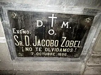 Jacobo Zóbel y Zangróniz (October 12, 1842, Manila – October 7, 1896, Manila)[1] was a Filipino pharmacist and businessman.[2] He is the patriarch of the prominent Philippine Zóbel de Ayala family. He is also a lead figure in the rise of Filipino nationalism.[3]