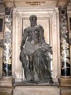 In 1543 he purchased the ancient fortified castle of Frascarolo, near present-day Induno Olona, in the Valceresio, which he converted into a sumptuous villa.[3] In the summer of 1545 he married Marzia Orsini, daughter of Ludovico Orsini, conte di Pitigliano. He was made a knight of the Order of the Golden Fleece in 1555, also the year of his death. Il Medeghino is buried in the Duomo of Milan.
