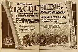 Jacqueline (also known as Blazing Barriers) is a 1923 American silent northern adventure drama film directed by Dell Henderson and starring Marguerite Courtot, Lew Cody and Edmund Breese.[1] It is based on a 1918 short story of the same title by James Oliver Curwood. It takes place amongst those working in the lumber industry in Quebec.