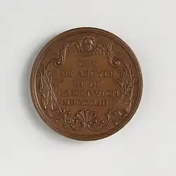 At the beginning of his time in England, Dassier printed proposals for making medals of 13 distinguished living Englishmen by subscription.[3] This series, with subjects largely from Whig political and Royal Society circles, was carried out 1740–1744.[4] The dies were engraved in London, then the medals were struck off at Geneva.[3]