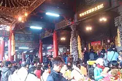 The Jade Emperor's Birthday (天公誕) is said to be the ninth day of the first lunar month.[14] On this day, Taoist temples hold a Jade Emperor ritual (拜天公, Mandarin: bài Tiāngōng; Hokkien: pài Thinn-kong, literally "heaven worship") at which priests and laymen prostrate themselves, burn incense and make food offerings.