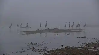 The silt and nutrients deposited in the reservoir favour the growth of reed beds, which provide shelter for several endangered species. The habitat of the reservoir and its surroundings is important for resident, wintering and migrating wetland birds, comprising 45 different bird species.[4] Five of these are globally threatened species.[7] The surrounding cultivated land also provides habitat for a large numbers of birds. Some of the notable species documented in the area include:[5]