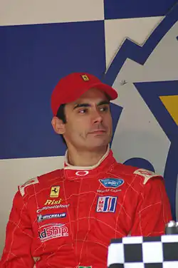 Jaime Melo Jr. (born 24 April 1980) is a Brazilian professional racing driver best known for his success in grand tourers as Ferrari driver. In 2006, he won the FIA GT Championship in the GT2 class driving for AF Corse, and the following year, he did the same in the American Le Mans Series for Risi Competizione, where he currently drives. Melo has collected GT2 class wins at the 2008 and 2009 24 Hours of Le Mans; the 2009 24 Hours of Spa; the 2007, 2009, and 2010 12 Hours of Sebring; and the 2008 and 2009 Petit Le Mans, among other endurance race wins.