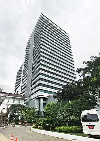![]() The refurbished 24-floor Building G, the main administrative office of the Jakarta City Hall complex. | |