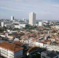 In 1972, the government of DCI Djakarta changed its name to Daerah Khusus Ibu Kota (DKI) Jakarta following the implementation of the Enhanced Indonesian Spelling System. In the same year, the old colonial building located on plot 9 was demolished to make way for the 24-story Building G. Construction of this building was meant to be a pilot project for other highrises in Jakarta and a reference to lay out new regulations on highrises in the city.[4] In the same year, the complex of the City Hall was expanded toward Jalan Kebon Sirih, with the construction of building H. Afterwards, new buildings were established in the complex, which now includes Building D and Building F. In 1982, the DPRD DKI building was constructed on Jalan Kebon Sirih.[5]