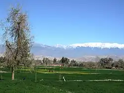 Jalalabad's climate is hot desert (Köppen: BWh), and it is one of the hottest localities in Afghanistan.[32] The city's climate has close resemblance to that of Arizona in the United States.[33] It receives six to eight inches (152 to 203 mm) of rainfall per annum which are limited to winter and the months of spring. Frosts are not common, and during the summer, the temperature can reach a maximum of 120 °F (49 °C).[34]