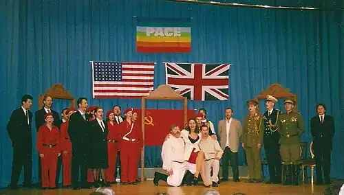 The musical takes place in Yalta, Ukraine, during the Yalta Conference, while Winston Churchill, Joseph Stalin and Franklin Roosevelt were dividing the world. Three valets have arrived to Yalta with them: the Russian, Griša; the American, Larry; and the British, Stanley. They were in charge of guarding and airing out of laundry for the Big Three.
