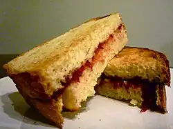 A jam sandwich is usually composed of two slices of bread with jam (or jelly) in the middle. It is normally consumed at lunchtime or as a snack. In Scotland, they are also known as pieces and jam, or jelly pieces.