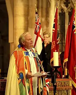 From Cambridge he became Vicar of St Lawrence, Towcester[4][5] and then Provost of St Edmundsbury Cathedral[6] before becoming (automatically, due to the Cathedrals Measure) Dean of St Edmundsbury on 19 November 2000.[7] Having received Letters Patent from Elizabeth II,[8] he was installed in Winchester Cathedral at a service on Lady day, 25 March 2006.[9]