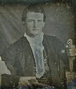 James Black was born on May 1, 1800 in Hackensack, New Jersey.[1] James' mother died when he was very young and he had difficulty getting along with his stepmother. Black ran away from home to Philadelphia, Pennsylvania, at age 8 and was apprenticed to a silversmith.[1] At age 18 he migrated westward and took jobs on the Ohio and Mississippi rivers. In about 1820, Black spent some time at Bayou Sara in Louisiana working as a ferryman and as a steamboat deckhand on the Red River which took him upstream to Fulton, Arkansas. Black left the boat and settled at a crossroads 14 miles (23 km) northeast of Fulton that would later become Washington, Arkansas, and Black's permanent home.[1]