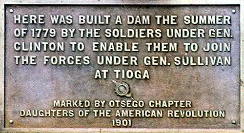 In 1779, Clinton led an expedition down the Susquehanna River after making the upper portion navigable by damming up the river's source at Otsego Lake, allowing the lake's level to rise, and then destroying the dam and flooding the river for miles downstream. This event is described by James Fenimore Cooper in the introduction to his popular novel The Pioneers (1823). It is commemorated by an annual Memorial Day canoe race.