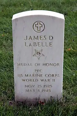- ^ "Medal of Honor – PFC James D. LaBelle, USMCR (Medal of Honor citation)". Marines Awarded the Medal of Honor. History Division, United States Marine Corps. Archived from the original on 2007-03-05. Retrieved 2007-11-24.