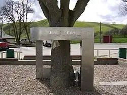 An inquest placed fault for the accident entirely with Dean.[105] There is a James Dean monument, financed by a Japanese businessman, in front of the former Cholame post office (which closed in 1994) and a restaurant (until its closure in 2022), one half-mile from the site of the accident.[106][107][108]