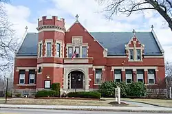 - Grove Street School addition,[q] 22 Grove St, Spencer, Massachusetts (1883, NRHP 1996)[73]