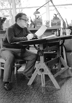 Walker joined the army in 1941, serving in the Aleutian Islands until 1945. During the war, he married Leona Buchanan. They had one child, Joy Walker Hall.[6] After World War II, he returned to the University of Iowa for an MA in art history and an MFA in studio printmaking.[1] At that time, he studied under Mauricio Lasansky,[7] considered "one of the fathers of twentieth-century American printmaking."[8] Lasansky had brought his printmaking skills and techniques from Stanley William Hayter's New York Atelier 17 to the University of Iowa School of Art and History (1945–1986). "If there is such a thing as a printmaking capital of the U.S., it could well be the Department of Graphic Arts at the State University of Iowa in Iowa City."[9]