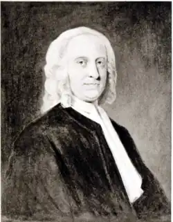 James Fisher (1697–1775) was one of the founders of the Scottish Secession church. He was born at Barr, on 23 January 1697, the second son of Thomas Fisher, minister of Rhynd. He was educated at University of Glasgow. He was licensed by the Presbytery of Perth on 31 October 1722 and subsequently called (5 October) and ordained on 23 December 1725. He dissented and joined with his father-in-law Ebenezer Erskine in his appeal and complaint to the Assembly of 1733. He was one of the four original members of the Associate Presbytery founded at Gairney Bridge on 6 December 1733. He was deposed by the General Assembly on 15 May 1740, but continued to preach in the parish church till 13 August 1741, when he was forcibly ejected on a sheriff's warrant. He then preached in a tent on Kinclaven brae during the time he remained in the district. On 8 October 1741 he became minister of Shuttle Street Associate Congregation, Glasgow (later Greyfriars United Free Church). He was deposed by the Associate (Antiburgher) Synod on 4 August 1748 over the question of the Burgess Oath. He was appointed Professor of Divinity by the Associate (Burgher) Synod in 1749. He died on 28 September 1775.[1]
