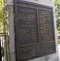 At the Bunker Hill Monument there are several memorial plaques dedicated to the men who died that day. One of those plaques honors the men of "Frye's Regiment" who were killed in action. The Plaque reads: "THESE TABLETS, IN GRATEFUL RECOGNITION OF THE PATRIOTIC SOLDIERS OF THE NEW ENGLAND ARMY WHO FELL JUNE 17, 1775, WERE ERECTED BY ORDER OF THE CITY COUNCIL OF BOSTON, JUNE 17, 1889."