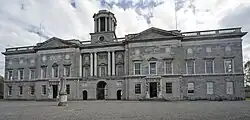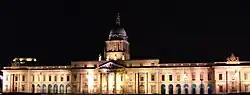 The 'House of Lord's Entrance' part of Gandon's extension to Edward Lovett Pearce's Irish Houses of Parliament. The great portico is flanked by a curved screen wall