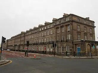 - Huge crescent of terraced houses, 1-36 Moray Place, Edinburgh (1822)