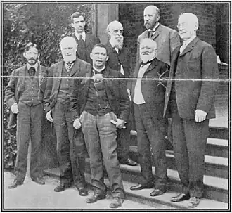 The campaign did well, but Stokes was disillusioned with the reform movement at the end of the campaign.[5] He joined the Socialist Party of America in 1906.[4] Even before that, Stokes was enlisted in the Socialist cause by the author Upton Sinclair, who sought to establish a new group fostering the dispassionate study of socialist ideas on college campuses around America, an organization to be called the Intercollegiate Socialist Society (ISS). Stokes was one of ten signatories of the published call for the new organization which appeared in the spring of 1905, joining Sinclair, author Jack London, attorney Clarence Darrow, sociologist and author Charlotte Perkins Gilman, and others.[14] The first formal meeting of the organization, held at a restaurant in New York City late in the summer of 1905, elected Stokes as second vice president of the ISS, serving with London as president and Sinclair as first vice president.[15]