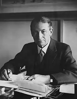 West worked on Bromyard House, the former Ministry of Pensions building in Acton, London (1914–1922), said to be the largest single building in Britain at the time.[2] He designed the hall of Royal Air Force College at Cranwell, Lincolnshire (1929–1933) in the seventeenth-century style of Sir Christopher Wren.[3] West also worked on the Duveen Wing of the National Portrait Gallery (1933), with Allison,[4] and also provided designs for the Royal Courts of Justice, Belfast (1933).[5] As chief architect, he oversaw the building of Thomas Tait's St. Andrew's House in Edinburgh (1935–39).[6] He was knighted in 1936. During the Second World War, West was appointed Director of Post-War Planning, as well as being chief architect of the reorganised Ministry of Works, until his retirement in 1945.[6]