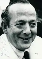 Grout's television credits include Chief Inspector Prescott in Waste Land - series 17, episode 1 of Dixon of Dock Green (1970) - Dai Owen in Looking For Clancy (1975), Jonas Bradlaw in Murder Most English (1977), Superintendent Rafferty in Turtle's Progress (Series 1 only), Div. Supt. Albert Hallam in Juliet Bravo (1981), The Doctor in Shelley (1982), Mr McAllister in The Beiderbecke Affair (1984), the Inspector in The Box of Delights (1984), Professor George Bunn in A Very Peculiar Practice (1988), Granville Bennett in All Creatures Great and Small, Chief Superintendent Strange in Inspector Morse and Mr. Justice Ollie Oliphant in Rumpole of the Bailey as well as the "chief whip" in Yes Minister.[1] He also played William Rowland in "The Girl on the Train" in The Agatha Christie Hour (1982). He was nominated for a 1965 Tony Award for Best Supporting or Featured Actor (musical) for Half a Sixpence.
