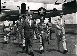 Douglas also emphasized the importance role of the Air Force during the Second Indochina War which later became known as The Vietnam War. Douglas also suggested that strengthening the air power and the buildup of South Vietnam Air Force would eventually could help the South Vietnam push back the North Vietnamese communist forces.[8] In 1957 under Secretary Douglas's direction, the Air Force sent several of their airmen in order to act as advisory and to train the Republic of Vietnam Air Force (RVNAF) and the RVNAF also began to receive several new U.S.-made aircraft such as the T-28A/B Trojan.[8][7]