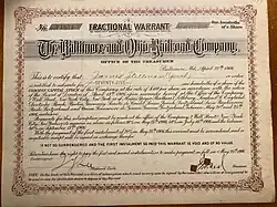 Stillman was an investor in a Fractional Warrant of the Baltimore & Ohio Railroad.