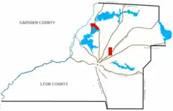 The Kirksey Plantation was bordered on the north by Frederick R. Cotten's Burgesstown Plantation and on the east by the William A. Carr Plantation. Today the first section of 950 acres (380 ha) would be on the west side of North Meridian Road at Orchard Pond Road, including Buck Pond. The second section was 3 mi (4.8 km) north of Tallahassee on 1,280 acres (520 ha).