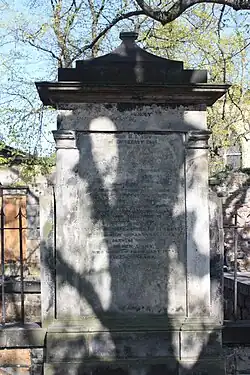 He died on 15 January 1854 in Edinburgh and is buried with his wife and family in Greyfriars Kirkyard. The grave stands at the top end of the western extension facing the eastern gate into George Heriot's School.