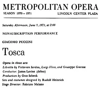 - ^ Henahan, Donal (February 26, 1972). "Met Gives Levine New Podium Job". The New York Times. Retrieved September 26, 2013.