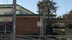 The school opened in 1950 and was named after James Lick (1796–1876), a philanthropist associated with the Lick Observatory on Mount Hamilton. It was the first of eleven comprehensive high schools in its district. The surrounding area transitioned from orchards to residential housing over the decades.[3] The land had been part of a proposed site for the city's airport in 1928.[4]The school experienced a decline in academic performance during the 1990s and was designated an underperforming school in 1999. Economic changes in the area affected enrollment and performance indicators into the early 2010s. For many years after its opening, James Lick was viewed as the "jewel" at the base of the foothills.[3]