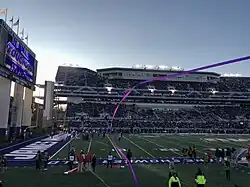 In November 2023, the Dukes earned their highest ever ranking in the AP poll, ranked 18.[41] On November 18, James Madison University hosted ESPN's College Gameday for the first time as an FBS school (third time overall).[42] The Dukes finished the regular season with an 11–1 record and received an invitation to play Air Force in the Lockheed Martin Armed Forces Bowl, falling to the Falcons 21–31 in the team's first ever bowl game appearance.[43]