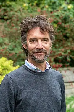 Mallinson travels to India each year, and has spent months at a time living as a sadhu, taking only a blanket and a small bag.[3] He enjoys paragliding including in the Himalayas and has accordingly been nicknamed the "flying yogi", a humorous allusion to the yogic flying of Transcendental Meditation.[3] He has competed internationally for the British paragliding team and won the British Open paragliding competition in 2006.[11] In 2018 he became the first person to cross the eastern Solent on a paraglider.[12][13][14] He has two daughters with his wife Claudia.[15][11] In 2015, Mallinson appeared in the Smithsonian Channel documentary West Meets East with his longtime friend, the actor Dominic West, which was shown in the UK on BBC Four;[16] they visited the Kumbh Mela at Allahabad, where he was ordained as a Mahant (Abbot) of the Terah Bhai Tyagi suborder of the Ramanandi Sampradaya, the only Westerner to receive this honour.[15][3][17]