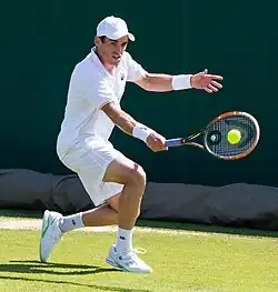 In late April, McGee once again equalled his best challenger result, reaching the semi-finals of the Tallahassee Tennis Challenger.[8] He then went on to win his first ever Grand Slam qualifying match, defeating Norbert Gomboš at the French Open and then stunning Guido Pella in two sets in the following round. McGee, however, was unable to become the first Irish tennis player since Sean Sorensen, in 1982, to reach the French Open main draw, as he lost in straight sets to Andrea Arnaboldi.[9] In early June, McGee once again reached the final round of qualifying for an ATP World Tour event, this time at the Queen's Club Championships, but came up just short in a tight three sets match against Daniel Brands. McGee next competed at Wimbledon qualifying but was defeated in straight sets by Aljaž Bedene.[10]