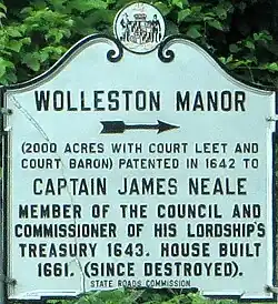 In a warrant dated July 25, 1641 in London from Lord Baltimore, Neale was granted another 2000 acres (8 km2) on October 31, 1642 for a manor which would be called Wollaston. The manor would prove to be the principal seat of the Neale family for several generations and was situated in what would later be called Charles County, Maryland.