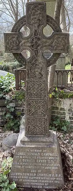 He died on 1 January 1912 and is buried on the eastern side of Highgate Cemetery.
