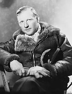 1. ^ Citation reads: On 6 December 1942 a force of bombers was detailed to make an attack in daylight on the Phillips factory at Eindhoven. The operation, which was executed faultlessly, demanded a high degree of skill and accurate timing. Bombs were dropped at varying heights down to rooftop level. Many hits were obtained, some in the center of the target area. Two gun posts were silenced. Intense and heavy opposition was encountered, and both on the outward and return flights attacks were made by enemy fighters. The great success achieved reflects greatest credit on the following personnel, who participated as leaders and members of aircraft crews. [28]