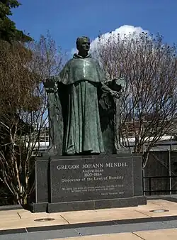 Mendel, a seven-foot bronze statue that portrays pioneering geneticist Gregor Mendel holding a peapod, was commissioned by Villanova University, installed in 1998, and stands in the courtyard at the front of the university's Mendel Science Center.[7][8]