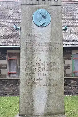 James Pittendrigh MacGillivray (1856 – 29 April 1938) was a Scottish sculptor. He was also a keen artist, musician and poet. He was born in Inverurie, Aberdeenshire, the son of a sculptor, and studied under William Brodie and John Mossman. His works include public statues of Robert Burns in Irvine, Lord Byron in Aberdeen, the 3rd Marquess of Bute in Cardiff, John Knox in Edinburgh's St Giles Cathedral, and William Ewart Gladstone in Coates Crescent Gardens, Edinburgh.