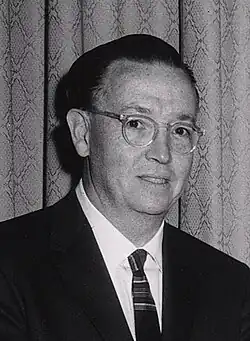 In August 1962, Kennedy appointed Ramey to be one of the five commissioners of the Atomic Energy Commission.[7][4] He was twice reappointed by President Lyndon B. Johnson in 1964 and 1968 with his final term ending in June 1973, making him the longest serving AEC commissioner.[1][7] Ramey provided President Kennedy with intelligence during the 1962 Cuban Missile Crisis.[1][8] Ramey used his position on the AEC to be a strong advocate for civilian nuclear applications such as nuclear power, medicine and desalination.[4][1] For most of Ramey's time as commissioner the chair was the Nobel-chemist Glenn T. Seaborg, who later described Ramey as the "most difficult of the commissioners to get along with on a personal level", but stated that Ramey was "very able and intelligent" and that the two of them managed to achieve a "working relationship" when "pushing agreed-upon objectives". In 1974, Anthony Ripley of The New York Times described Ramey as "perhaps the single most influential member of the commission in the last decade".[9]