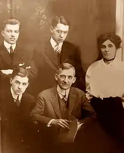 Thurber married Althea Adams in 1922, although the marriage, as he later wrote to a friend, devolved into "a relationship charming, fine, and hurting".[10] They lived in the Sanford–Curtis–Thurber House, in Fairfield County, Connecticut, with their daughter Rosemary[11] (b. 1931).[12][13][14] The marriage ended in divorce in May 1935, and Althea kept[15] Sanford–Curtis–Thurber House.[1] He married his editor, Helen Muriel Wismer (1902–1986) in June 1935.[16] After meeting Mark Van Doren on a ferry to Martha's Vineyard, Thurber began summering in Cornwall, Connecticut, along with many other prominent artists and authors of the time. After three years of renting, Thurber found a home, which he referred to as "The Great Good Place", in Cornwall, Connecticut.[17][18]