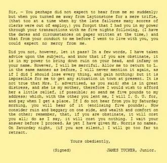 Tucker was convicted at the Chelmsford Spring Assizes on 3 March 1826 of blackmailing his cousin, James Stanyford Tucker. He was tried before Sir William Alexander, C.B., "On an indictment for sending a threatening letter...accus[ing] of an infamous crime" and sentenced to transportation for life. He was 18 years old at the time. The next year he was put aboard the convict ship Midas, which sailed for Sydney Cove.[3] He arrived in Sydney in 1827 and worked at Emu Plains, New South Wales. Still a convict, he was sent to Port Macquarie in 1844. He was in Goulburn from 1849 to 1853.[4]