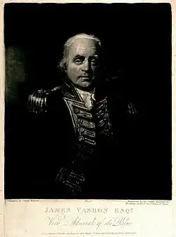 Admiral James Vashon (9 August 1742 – 20 October 1827)[1] was a British officer of the Royal Navy. He saw service during the Seven Years' War, the American War of Independence and the French Revolutionary and Napoleonic Wars. He was first captain of HMS Dreadnought, between 1801 and 1802. Previously, he had commanded Alert (1781), Europa (1786), and Formidable.