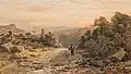 He was born in a family of a warehouseman and began his artistic career as an apprentice to Manchester engraver Joseph Heyes, soon turning to painting. In 1858 he moved to Llanrwst, where he would paint local landscapes in watercolours.[1] With the possible exception of a trip to Switzerland and Italy in about 1864 and a Northern journey in the late 1860s, he remained in North Wales for the rest of his life.[2] Upon meeting Francis William Topham in Wales, Whittaker was encouraged to join the Society of Painters in Watercolours, becoming an associate in 1862, and a member in 1864.[1] He died in 1876 by drowning in River Llugwy, where he fell trying to collect his painting gear.[1][2] Whittaker was married to Sarah nee Heyes (daughter of Joseph Heyes), widowing her and leaving 4 children who outlived him.[1]