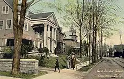 In 1887, Jamestown Electric Light and Power Company, Art Metal, and WCA Hospital were established. In 1888, Jamestown Woolen Spinning Co. was established and the cornerstone of Holy Trinity Lutheran Church laid. In 1889, the American Aristotype Co. was established.[8] The first electric trolley car in Jamestown made its appearance in 1890. In 1891, a fire destroyed the Old Homestead Hotel at Third and Pine Streets and four people died, but the James Prendergast Library and the Municipal Light Plant were established the same year.[8]