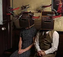 He is known for creating highly manipulated surreal tableau vivant photography. Baldridge's work references many literary, philosophical, religious, and artistic themes such as the symbolism and psychology of dream imagery, the frangibility of relationships,[7] altered states of consciousness, Jungian archetypes, and esoteric tales and fables. "He has filtered those loaded fables through his subconscious, tempered them with dystopia, tasty fetishes and research gleaned from the musty stacks of Latin scholarship, and emerged with (a) painterly surrealistic vision."[8] He cites Leonora Carrington, Søren Kierkegaard, Joseph Campbell, Salvador Dalí, Pablo Picasso, Remedios Varo, Edward Gorey,[9] and the Epic of Gilgamesh as but a few of his varied inspirations. His subjects, often have their faces and/or heads obscured allowing the viewer greater opportunity for symbolic interpretations of identity and challenging accepted preconceptions about the genre of portraiture.[10] Baldridge's works are often accompanied by narratives written in a very purple and baroque prose which serve to describe the point of peripety represented in the image itself.
