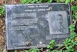 Jan Cilliers Park is a park in Groenkloof, Pretoria, South Africa. The 4.5-hectare (11-acre) park on the northern slopes of Klapperkop is also known as Protea Park. The park is dedicated to native plants and offers scenic views of the city and the Union Buildings. The park is on the corner of Wenning and Broderick Streets, with the entrance on the latter.[1] The centerpiece of the park is a stream with 14 miniature waterfalls connecting two dams alongside a wide variety of plants. The park also features large lawns interspersed with rockeries, trees, and shrubs.
